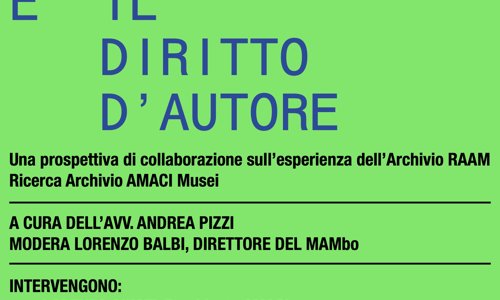 Lunedì 1 marzo 2021, AMACI – Associazione dei Musei d’Arte Contemporanea Italiani organizza I Musei d’arte contemporanea e il diritto d’autore. Una prospettiva di collaborazione sull’esperienza del Progetto RAAM, giornata di studi online sul tema del diritto d’autore promossa con il sostengo della Direzione Generale Creatività Contemporanea del MiBACT, che per la prima volta riunisce in un unico tavolo i soggetti che tutelano le opere di carattere creativo e le istituzioni che, per ragioni di studio, di ricerca, di diffusione e valorizzazione della conoscenza del nostro patrimonio culturale, ne richiedono i diritti di utilizzo.