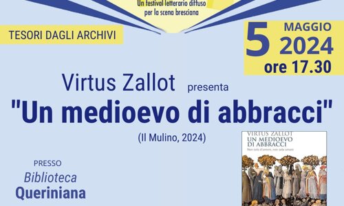 Per l'occasione Virtus Zallot, docente dell'Accademia SantaGiulia, presenterà alla Biblioteca Queriniana alle 17:30, il suo nuovo libro "Un medioevo di abbracci" (il Mulino, 2024).